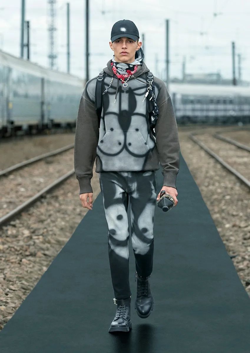 炫酷個性的叛逆少年與多國文化背景相結合,會帶來怎樣的驚喜?七月,Givenchy 2022年初春系列大秀在鐵軌密布的巴黎老式火車站落下帷幕,品牌創意總監馬修·威廉姆斯(Matthew Williams)希望將美式風格融入巴黎的全新生活,攜手美裔墨西哥藝術家Chito帶來充滿故事性和潮流感的華麗冒險。