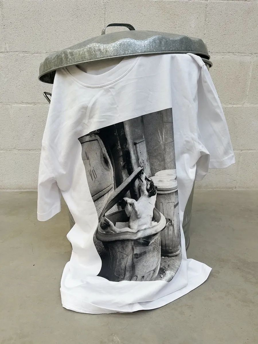 印在T恤上的照片是在Teller父親去世後,他回到父親老家,發現一隻凍死的狗被扔在垃圾桶裡。正如這一系列其他單品上的圖案,他只是用照片講述故事的人,其作品展示了生活中的困難、悲劇、愚蠢、龐雜與美麗。這次合作透過深耕藝術和時尚領域的多年經驗與視角,真切傳遞出Palace象徵的英國滑板精神。