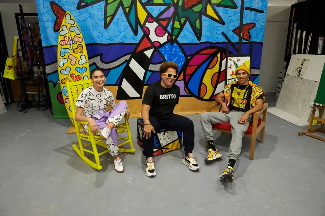 PUMA首度攜手國際知名視覺藝術家羅梅羅·布裡托(Romero Britto)共同推出了色彩鮮艷的全新聯名系列。此次聯名結合了羅梅羅標誌性的快樂藝術(Happy Art)與PUMA創新酷炫的設計,以紫色和橙色為本季主色調,通過明亮豐富的色彩圖案和視覺表達營造出輕鬆歡樂的氣氛,同時也體現了藝術家希望傳達給世界的樂觀態度。可以說,這次的設計由愛、希望與幸福共同塑造。