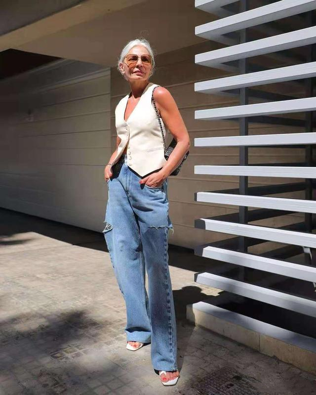 牛仔作為時尚界的常青樹,廣受時髦精的喜愛,同樣也吸引著Grece Ghanem博主。她在選擇牛仔的時候不僅僅停留在基礎款上。年輕人喜歡的時髦穿搭在她這裡一一體現,而且在她滿頭銀髮的襯托下,又有另外一番天地。