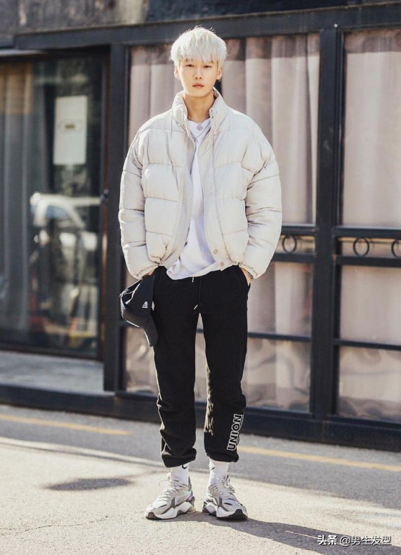 白色的羽絨服搭配黑色的運動款褲子,注意羽絨服的款式盡量選短款的,能顯身材。腳上可以做一些更好的處理,把褲腳塞進襪子,鞋子可以霸氣一些,整個搭配特別提升自己的形象!