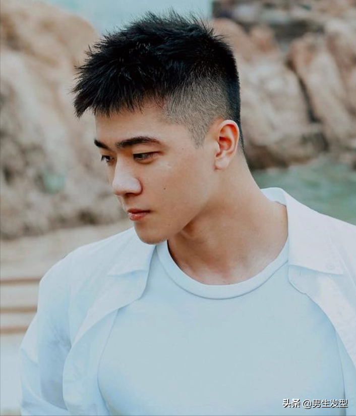 男生不用燙的髮型,當然是短髮居多一些。這款子彈頭髮型,是特別經典的帥氣短髮,造型的主要特點是把三面的頭髮全部剃短,然後中間的頭髮剪出尖尖的效果,看起來特別修飾臉型,讓你的五官顯得更加精緻,很帥氣迷人。