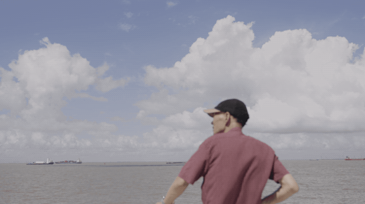 清晨七點,我們在一條攝影棚內見到梁永安。他穿著紅色條紋襯衫,身形瘦削,背著笨重的雙肩背包,只要出門,就會帶上單反,隨走隨拍,捕捉江河與雲影的變化。