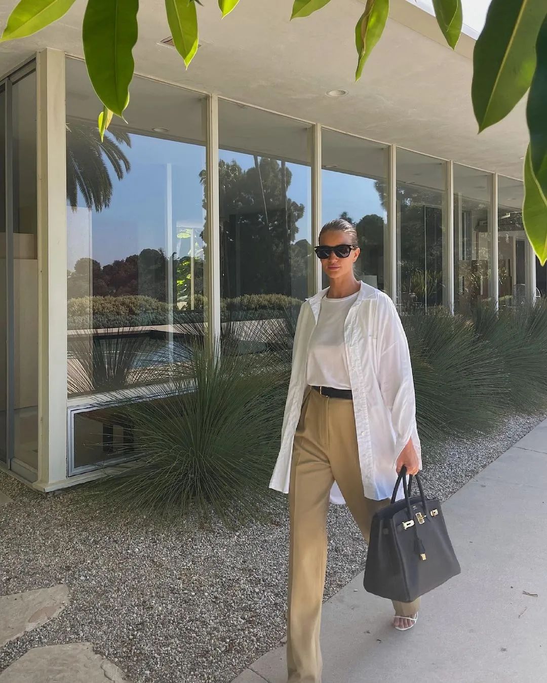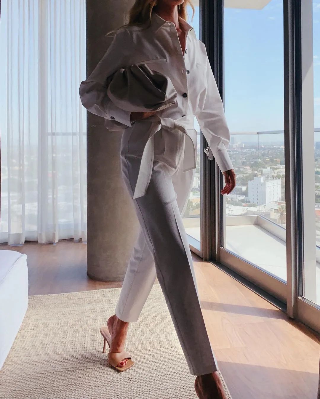 例如她在工作日最常穿bodysuit+西裝褲+方頭高跟鞋,一方面跟現在越來越放松的職場穿搭氣氛相關,另一方面,由極簡風、純粹色調組成的造型既幹練又得體,適合時髦女總裁。