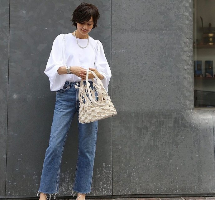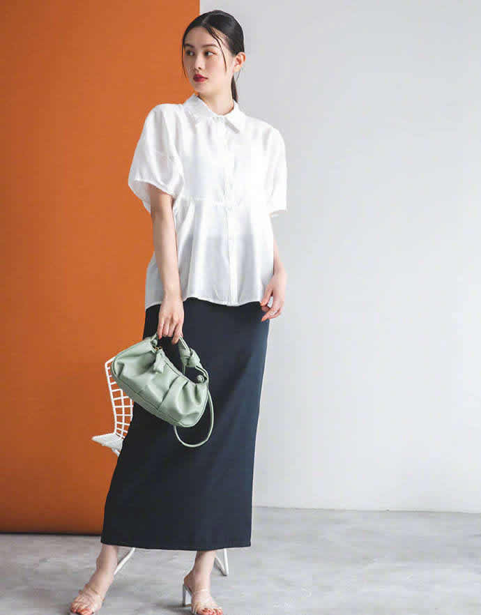 適當的設計感,對於襯衫很有必要。這個設計感,不一定來自襯衫本身,與之相配的半身裙或包包也是最佳窗口。優雅風的個性,小量感、小動作,唯小才見大。