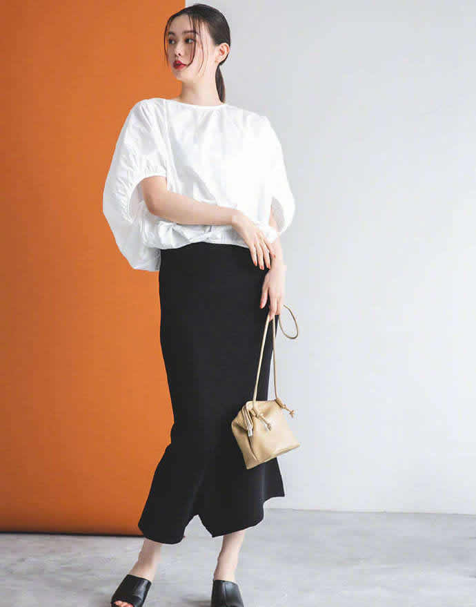 這2款半身裙,都有明顯的曲線附著。側開叉不規則包裹,以別樣的形式打破基本款的無趣。一樣的利落H型,卻因靈動俏皮而勝出。