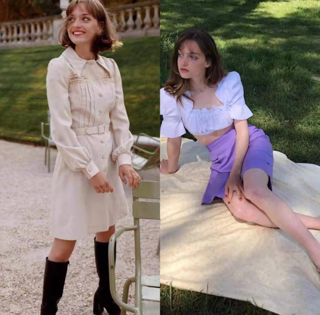 而純淨的白色短款上衣帶有花邊的設計,對身材是有著較高的要求。搭配紫色的半身裙展現了夏日的甜美風格,利用白色和紫色之間的結合,神秘而又優雅。