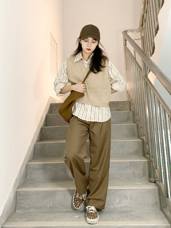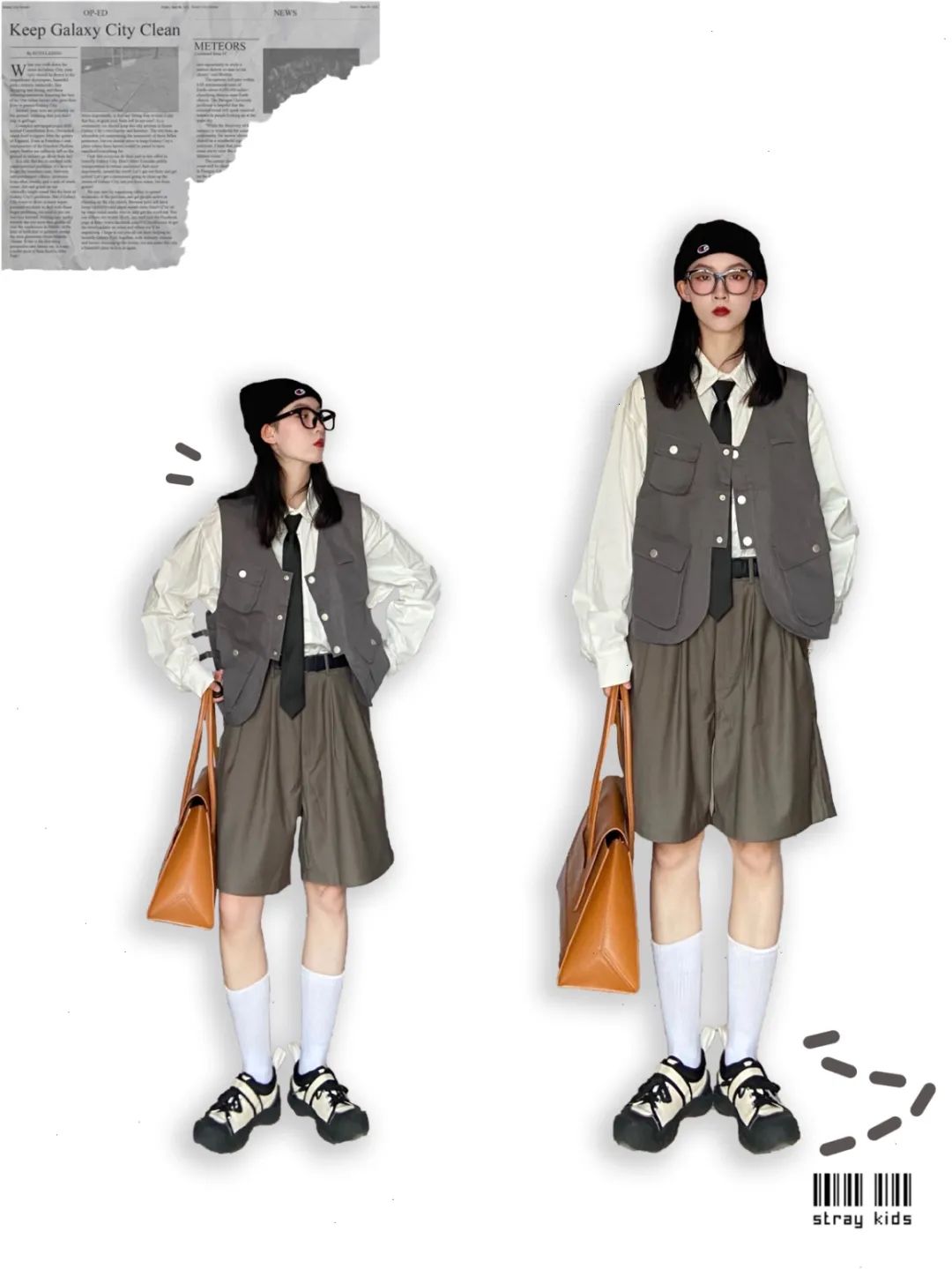跟外語學院一樣也是馬甲+襯衫的定番組合,只要在顏色和圖案的選擇上面偏素,就會有中性感。