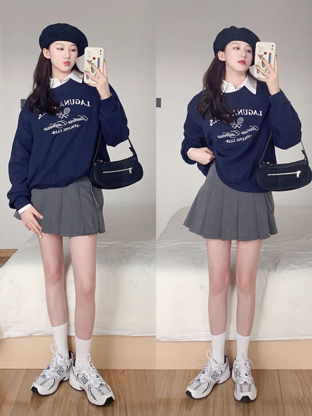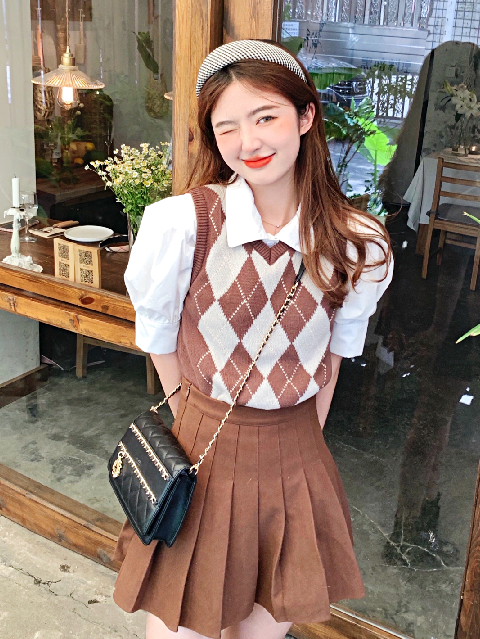 它還賊百搭,能跟一切的裙子、褲子組cp。不過外語學院的女生要穿出復古學院風的感覺,還是得搭配百褶裙。