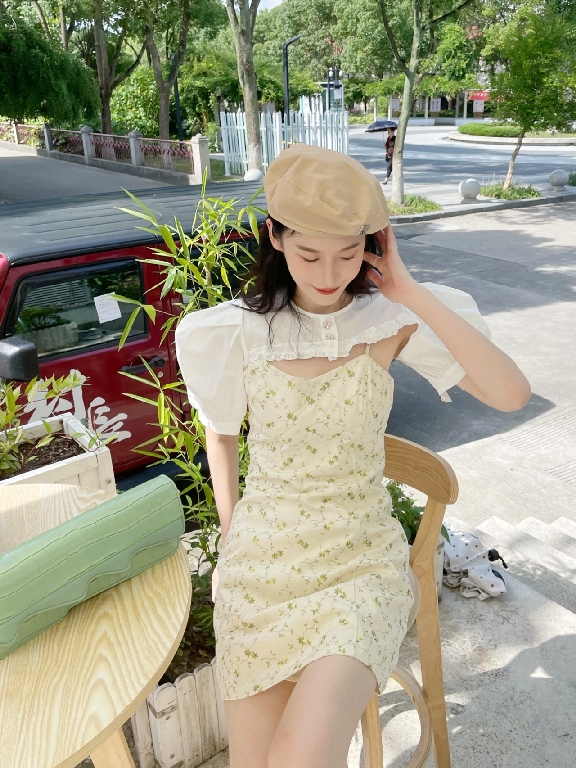 最後這個是經典穿法了。單穿吊帶碎花裙的露膚面積較大,容易暴露身材bug,加上針織衫就能很好地遮住手臂上的肉肉。
