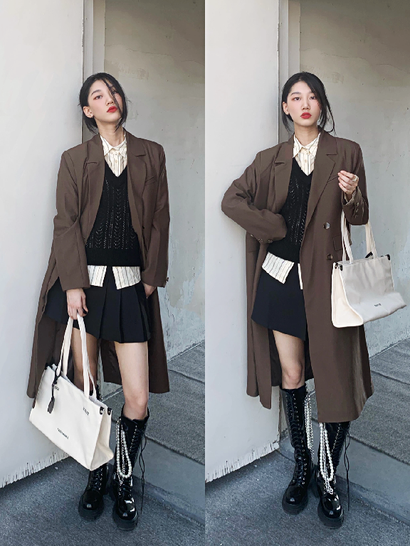 高個子姐妹可以嘗試長款西裝,走路帶風,酷颯氣場全開。搭配騎士靴看起來就不會那麼死板,平時參加實訓活動,或者跟姐妹去逛街,都不會違和。