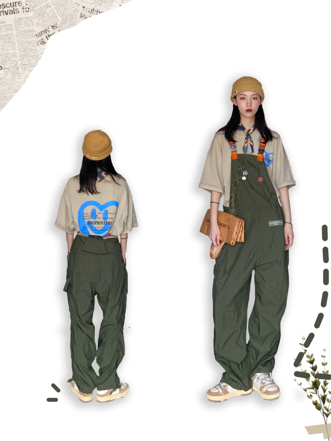 背帶褲絕對是我心中的減齡top1單品,配上經典的T恤酷到爆炸。因為版型寬鬆,肚子裡的肉肉也能被完美遮住。