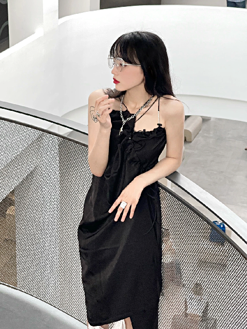 背帶裙屬性就很文藝,而且能遮住身材大部分的缺點,看展時這麼穿不會出錯~