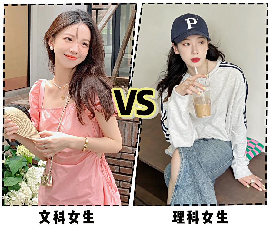 我還發現,文科和理科的女生穿搭風格還是不太一樣的,一個溫柔甜美,一個又酷又颯~