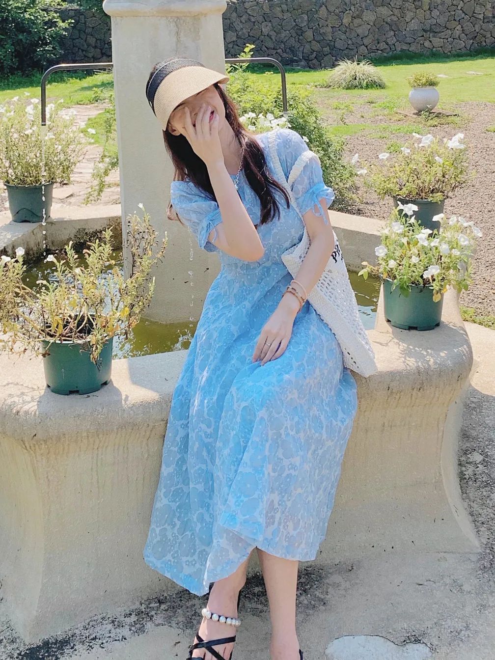 我翻遍了很多韓國博主,發現她們都很喜歡穿碎花,這也是韓系穿搭的經典元素,再搭配韓式捲髮,氣氛感拿捏了~