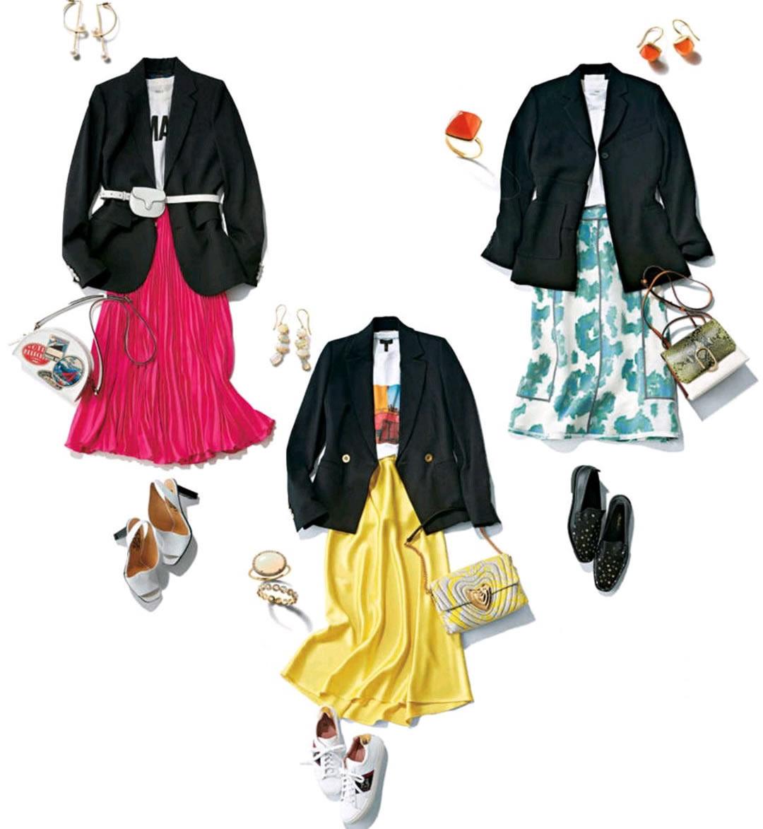 硬朗帥氣的黑色西裝,幾乎可以匹配夏天衣櫥中的所有裙裝。連衣裙、半身裙不限,顏色越鮮艷、圖案越誇張,整體效果越時髦。僅需一件,即能完美聯結換季過渡。