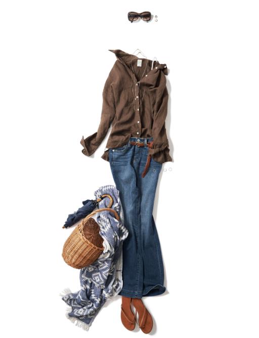 常見的牛仔褲,搭配一件棕色襯衫,活脫脫改變著休閒格調,呈現獨有韻味的優雅風格魅力。棕色,也讓襯衫一改中性,變得溫柔可人。