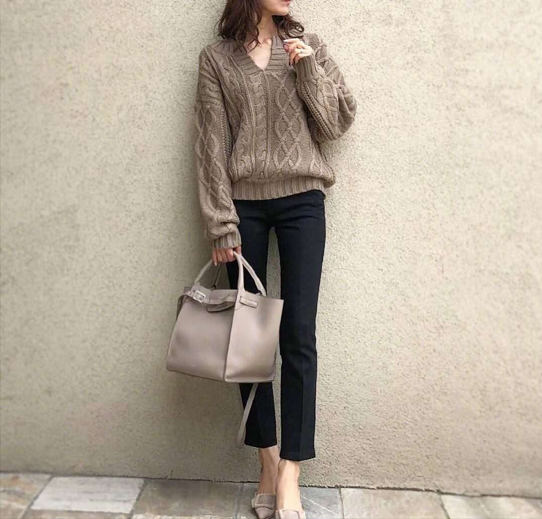 V領or高領?針織衫無論厚或薄,V領都是首選,甚至比圓領更值得嘗試。不挑臉型與脖長,三角尖領形狀的加持,給休閒針織註入精緻感,這一點毋庸置疑。