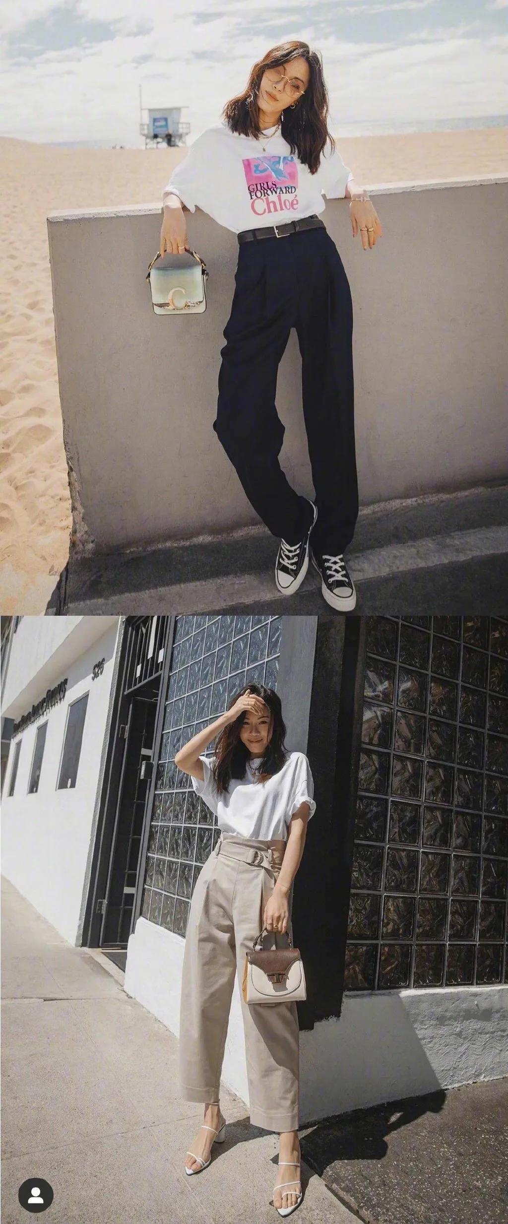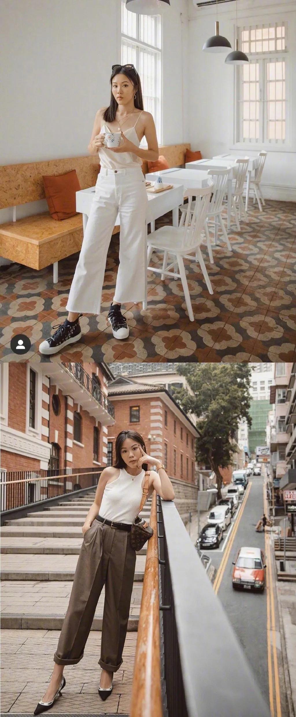 現在的西裝褲已經不是那種隻限定於正式場合的版型了,復古寬鬆的煙管褲,特別能包容腿型,配上一件簡單的白色背心,帶著那種中性的健康的有力量的性感和利落,真的可以學學這種風格的穿搭,十分高級。