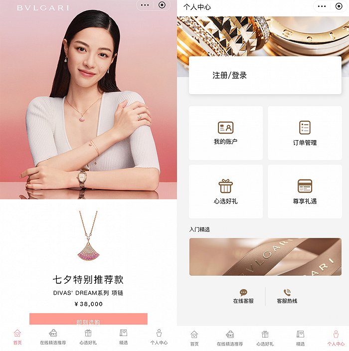 隨後,京東對這種全新合作模式進行了升級——當京東與寶格麗合作時,Line小程序已經變更為京東小程序。消費者在京東APP搜索「寶格麗」,將跳轉至品牌在線精品店京東小程序,消費者可在小程序下單商品。