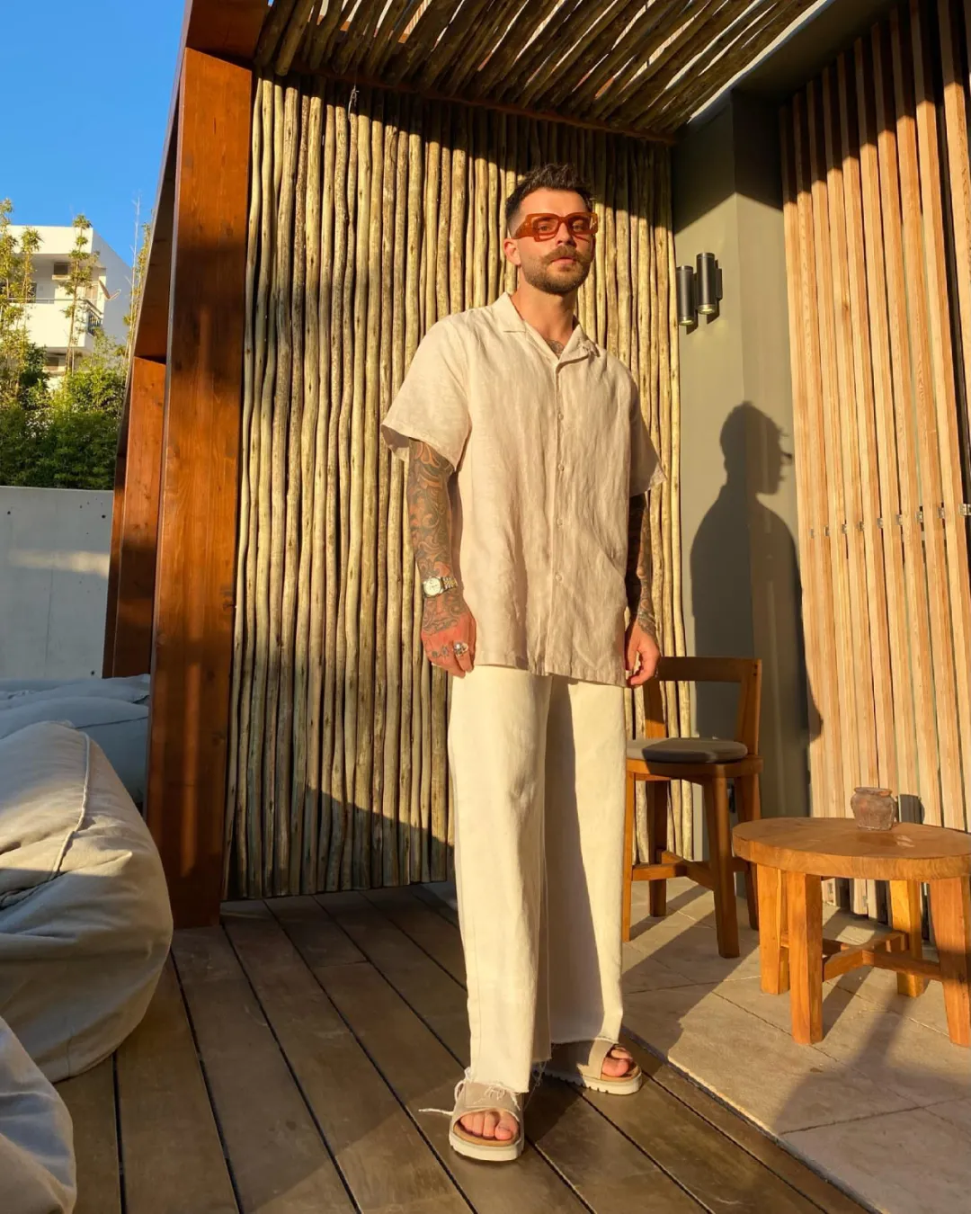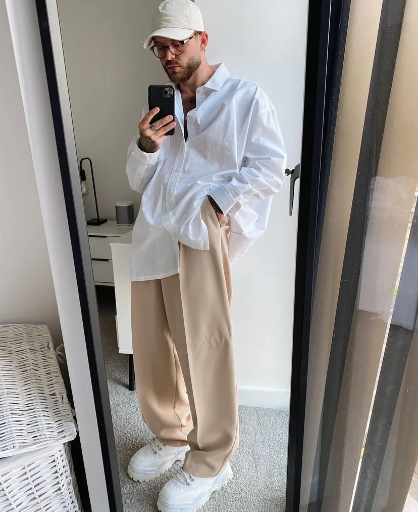 而今天的主角 Reecea Walker 的日常穿搭中,他同樣經常喜歡用米色與粉色這種簡約的淺色作為主色調,這兩種飽和度較低的顏色能夠讓整體的搭配顯得更加乾淨利落,對於男士而言是一種非常「便利」的顏色,能夠高效的提升精緻感。