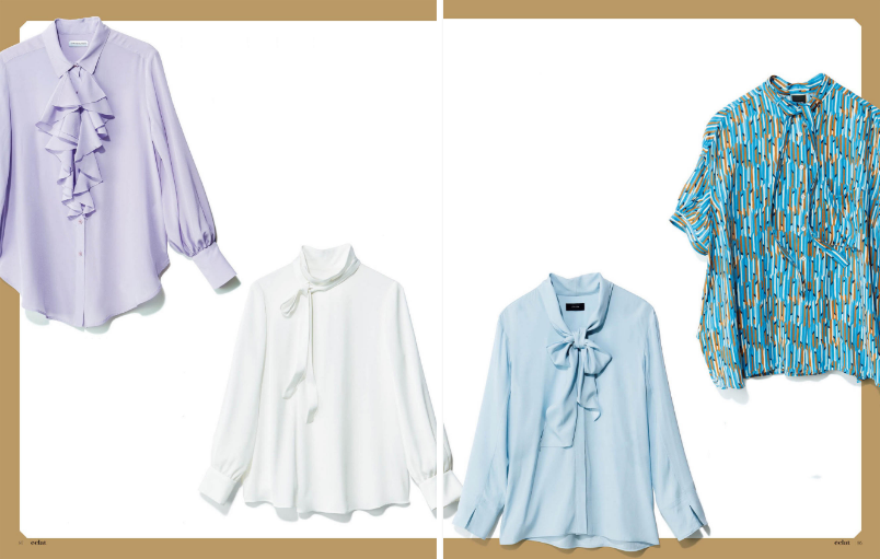 藍色襯衫+闊腿褲:真絲襯衫,泛著淡淡的光澤,自帶一種高級,加之飄帶的設計,增添了一份女生味,與闊腿褲搭配,撲面而來的大女生風范。