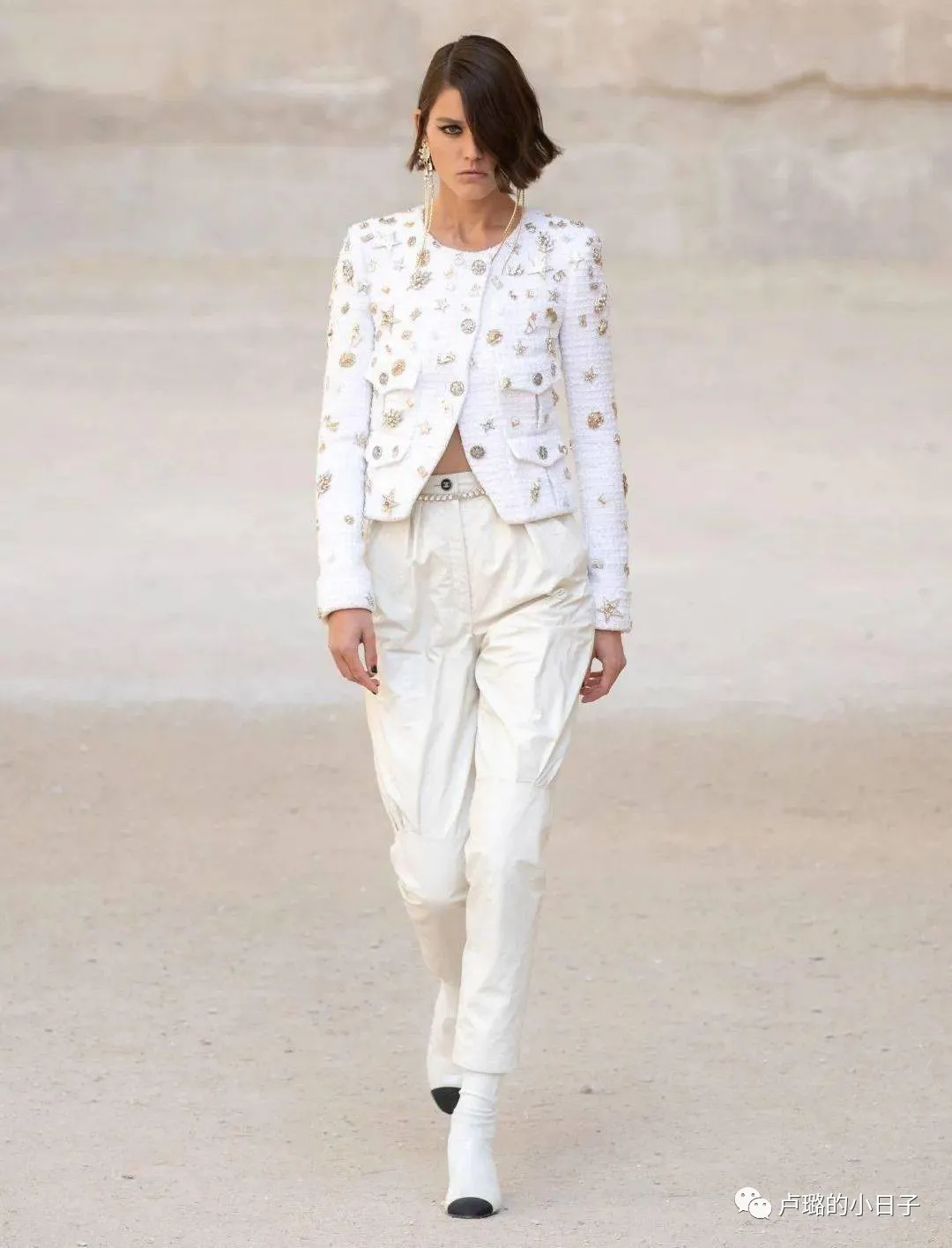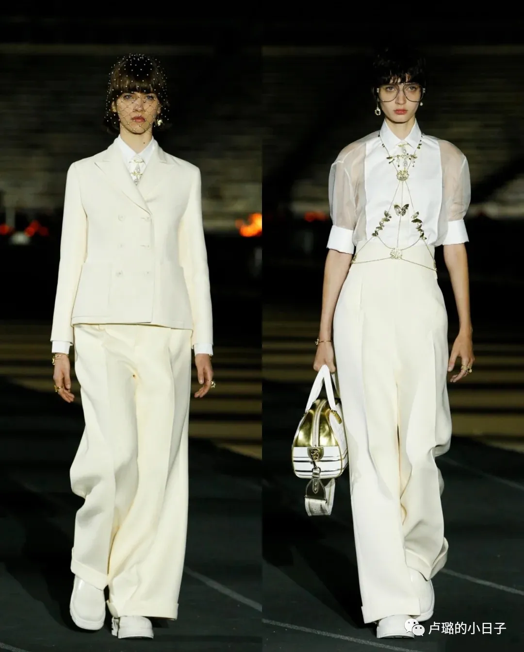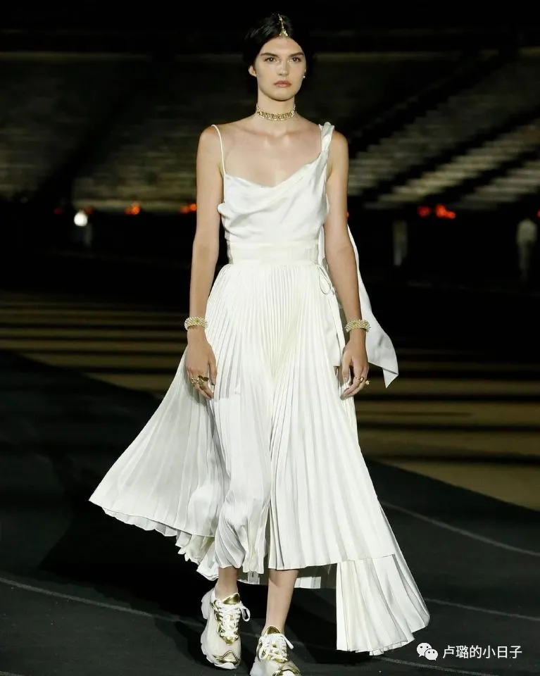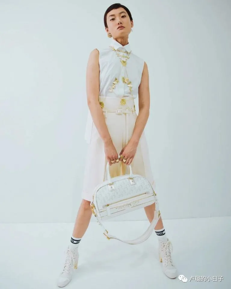 看了很多套之後,發現DIOR這次秀場的穿搭一直都是白色和金色進行搭配。