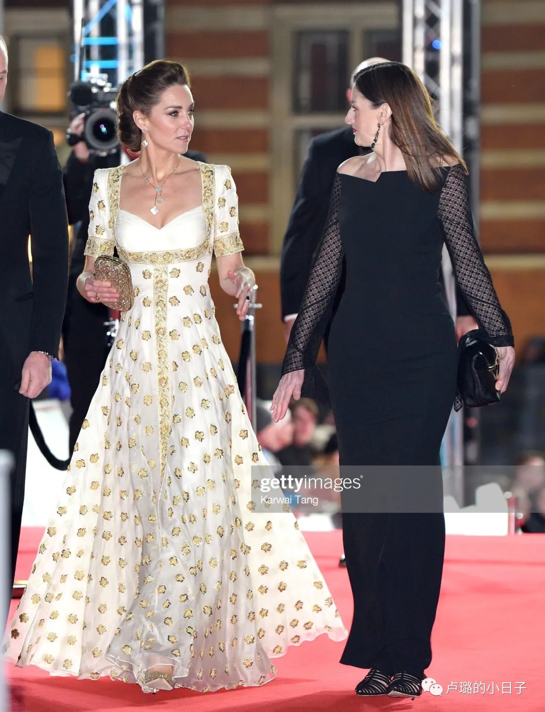 之前寫過的凱特王妃,在出席活動時,就穿過一條白金相間的中袖長裙。