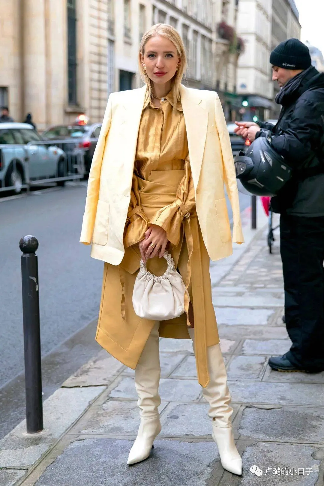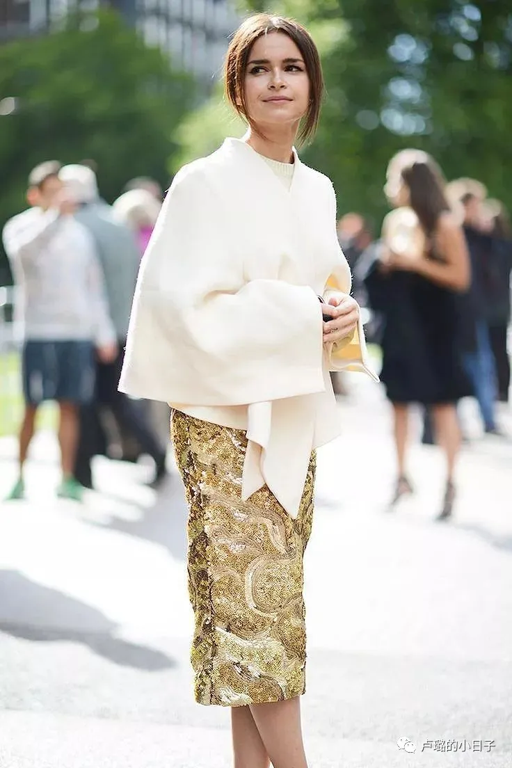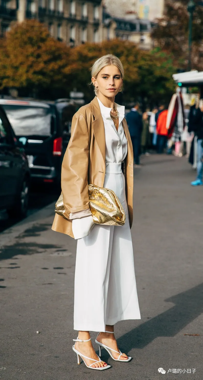 除了金色外套,白色外套的搭配也是白金搭配一種方法。