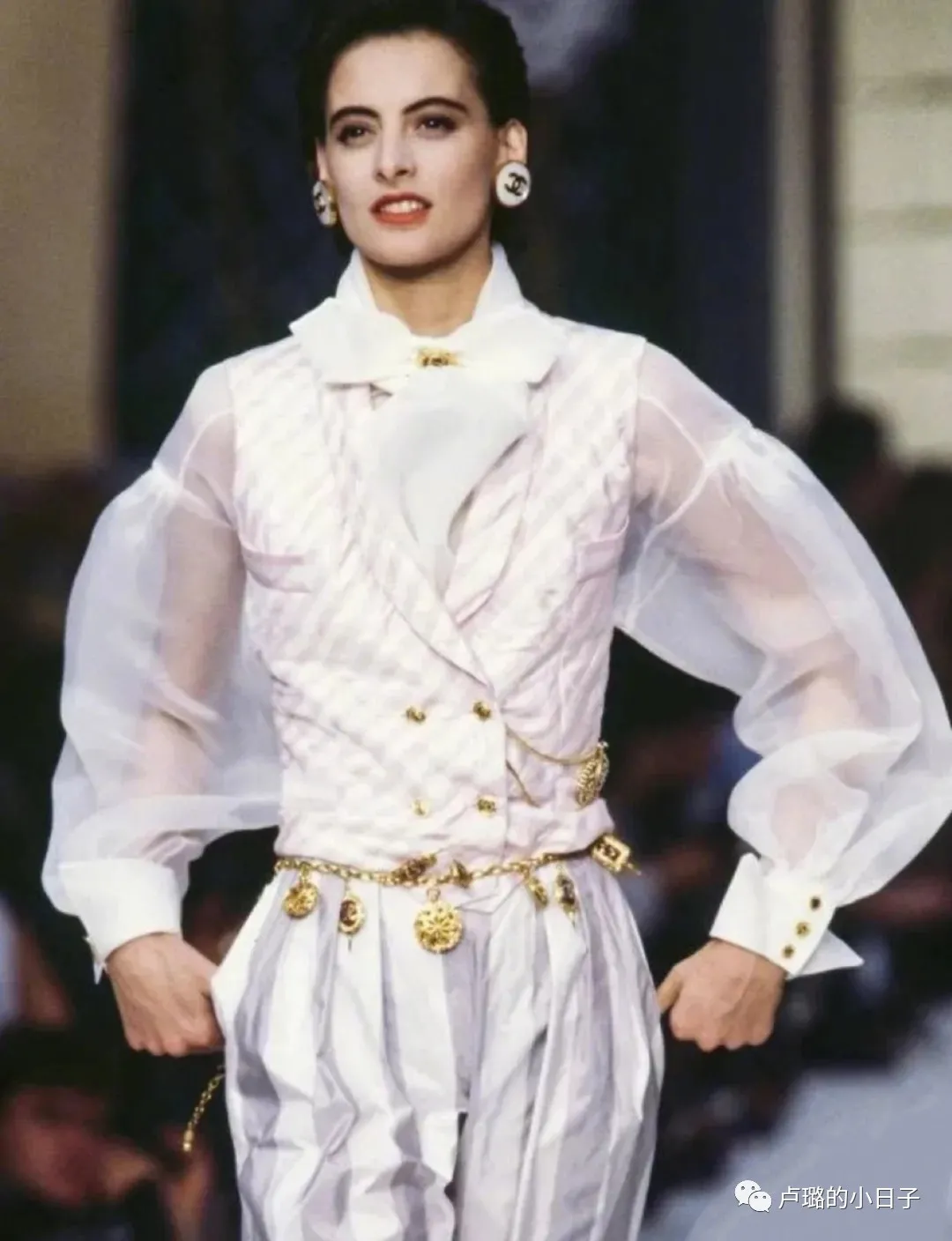 80年代的CHANEL秀場裡,CHANEL歷史上第一位專屬模特伊娜貢獻了許多經典的白金搭配秀場照。