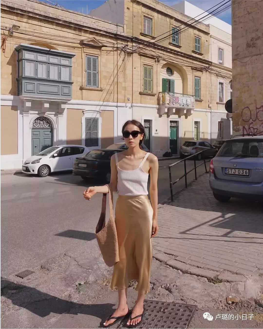 這一套整體風格偏休閒、舒適,衣服和裙子的面料也比較柔軟,夏天穿非常清爽,再搭配一個麻布包,配雙人字拖,非常的慵懶但是時尚。