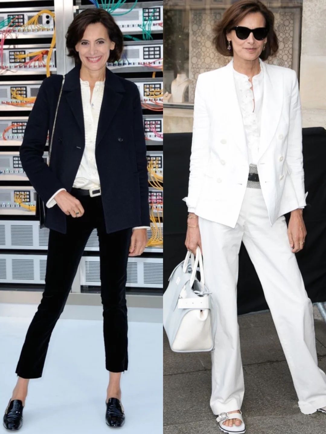 最值得一提的是鞋子,伊娜很少採用高跟鞋,在其穿搭中,平底鞋出鏡率最高,無論是尖頭平底鞋、樂福鞋、球鞋、穆勒平底鞋,還是帶點跟度的尖頭鞋,都備受其歡迎。