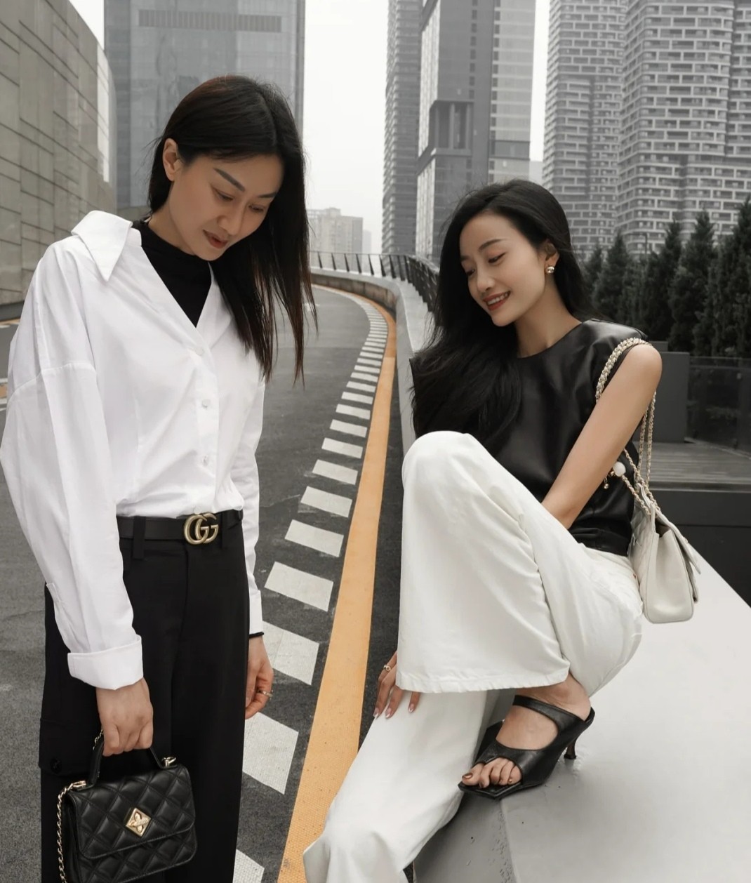 黑色與白色之間的結合,是所有大齡女性都比較偏愛的一類CP。黑色的高領內搭,可以突出一截領口來強調出層次感,配合黑色褲裝時,顏色的結合不會混亂。