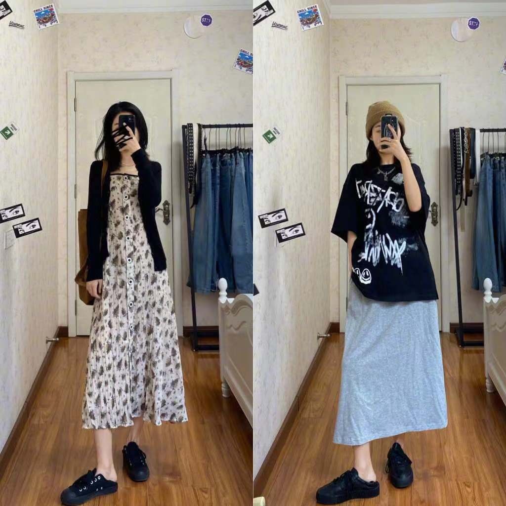 灰色的半身裙休閒又日常,最適合女生搭配帥帥的休閒風了,所以穿起來特別柔軟和舒適。和簡約又帥氣的長款版型T恤搭配,穿出墜感,這是顯瘦又顯高的帥氣穿搭。