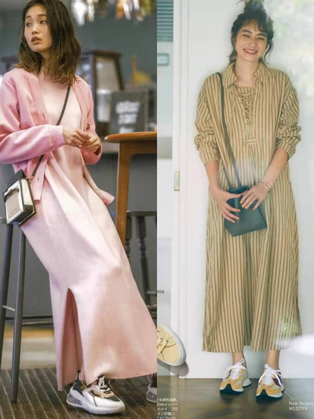 休閒率性的球鞋輕鬆平衡裙裝的柔美,減齡不浮誇,其中球鞋顏色可以與裙裝做出呼應,精緻感滿分。
