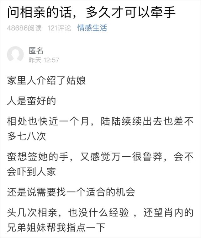 小夥:相親多久才可以牽手?萬一很魯莽,會不會嚇到人家
