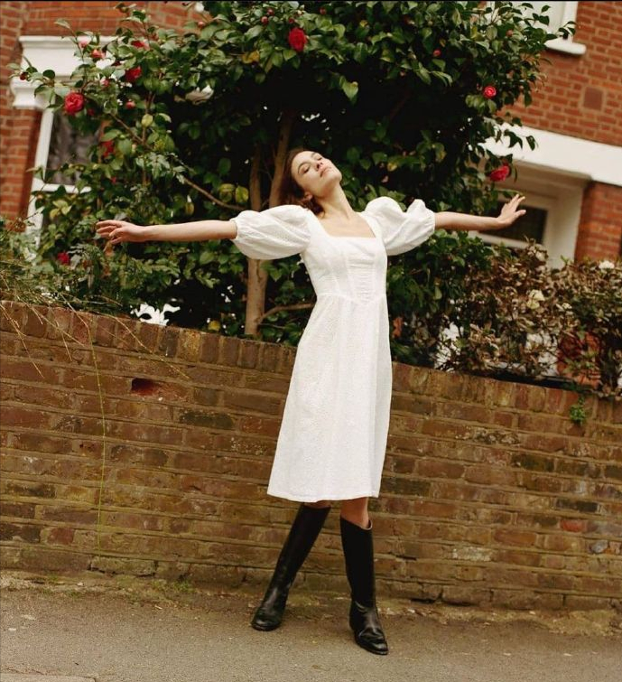 如果不出意外,法式風中的裙子,不管是連衣裙、還是半身裙,開叉是明顯的招牌。當然,它是茶歇裙的經典元素。小小開叉,可高可低,位置不限,卻是掀起一番風情的經典。