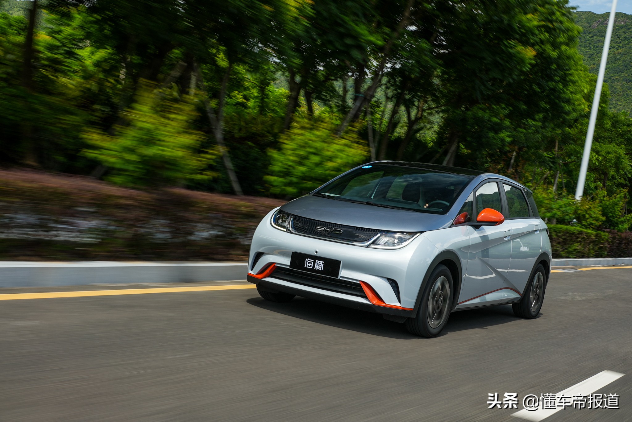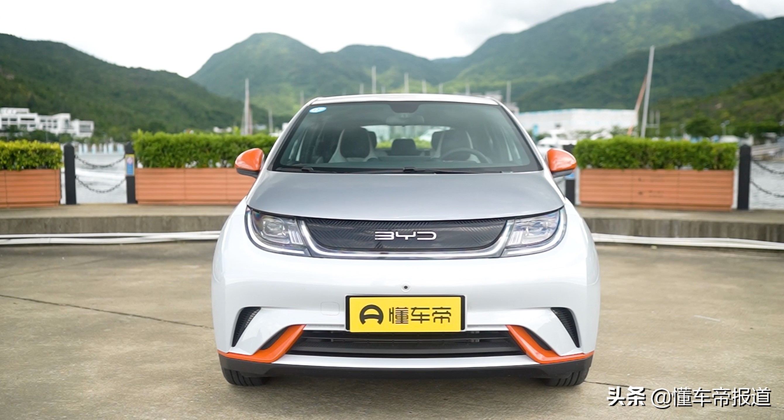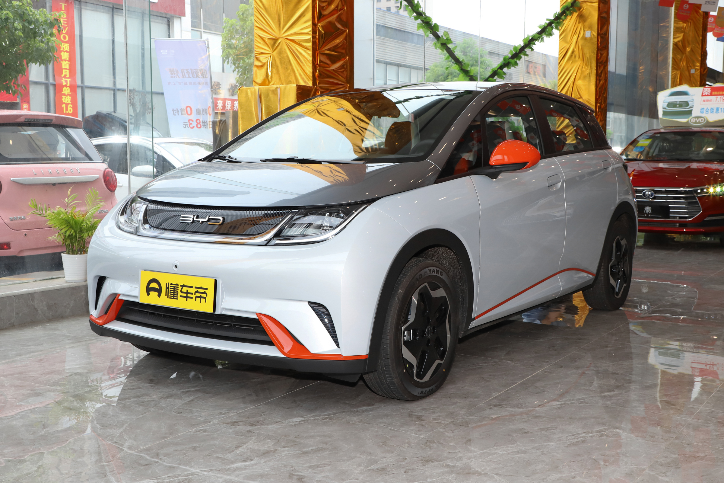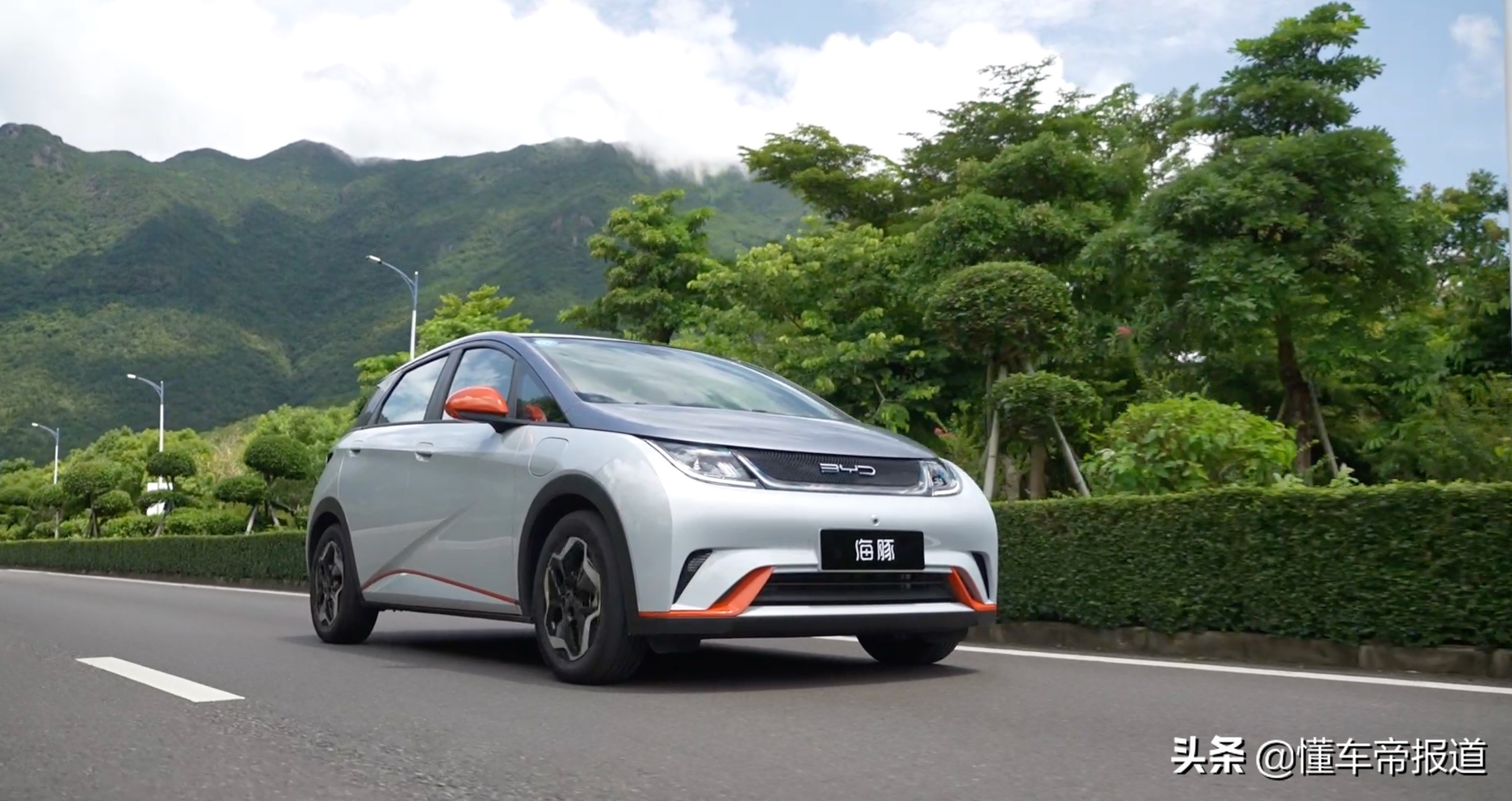 海豚採用雙色車身,顏色命名也是萌萌的,例如什麼「貝貝灰""嘟嘟白" "颯颯綠""蜜蜜橙"等,我們今天試駕的這臺就是蜜蜜橙配色,說是蜜蜜橙,其實只是在嘟嘟白配色的基礎上,在前包圍、後視鏡等位置使用了橙色的裝飾點綴。