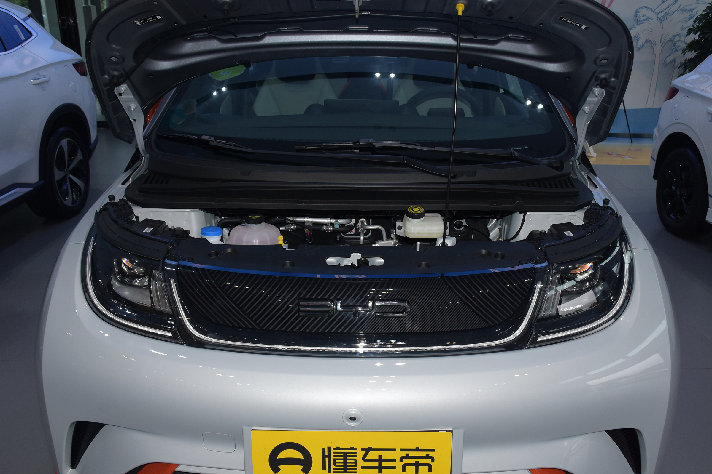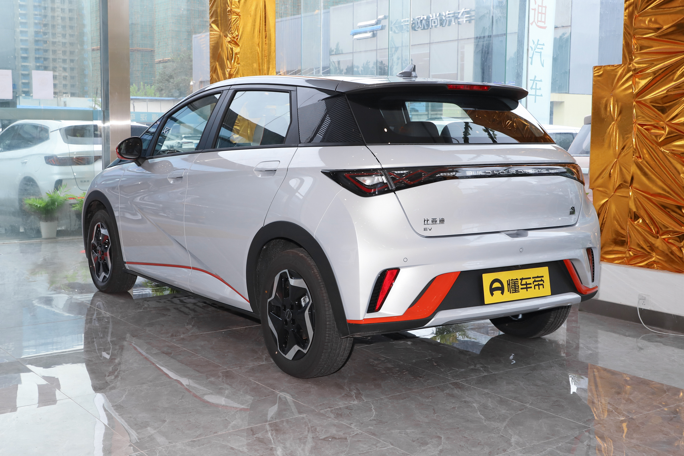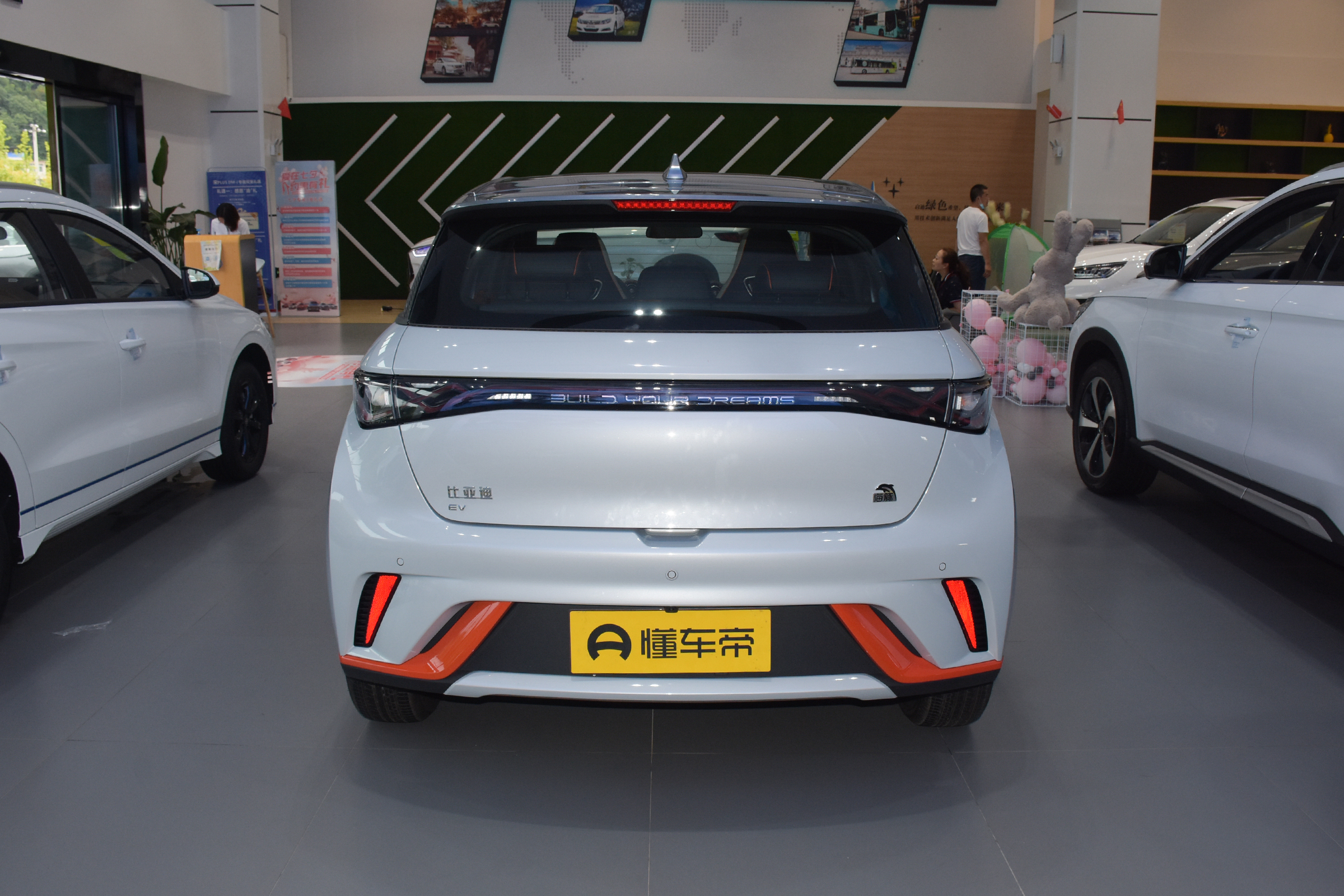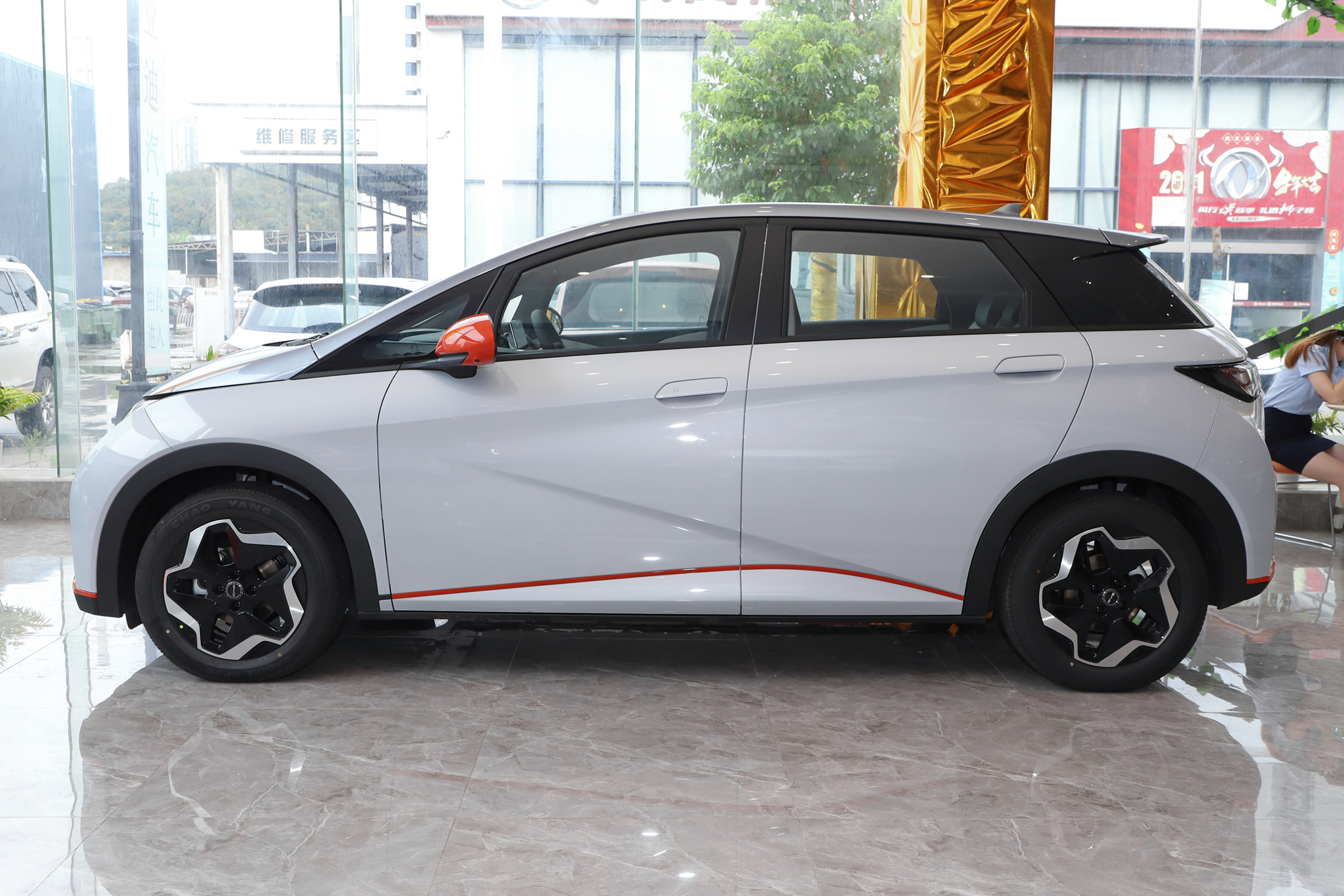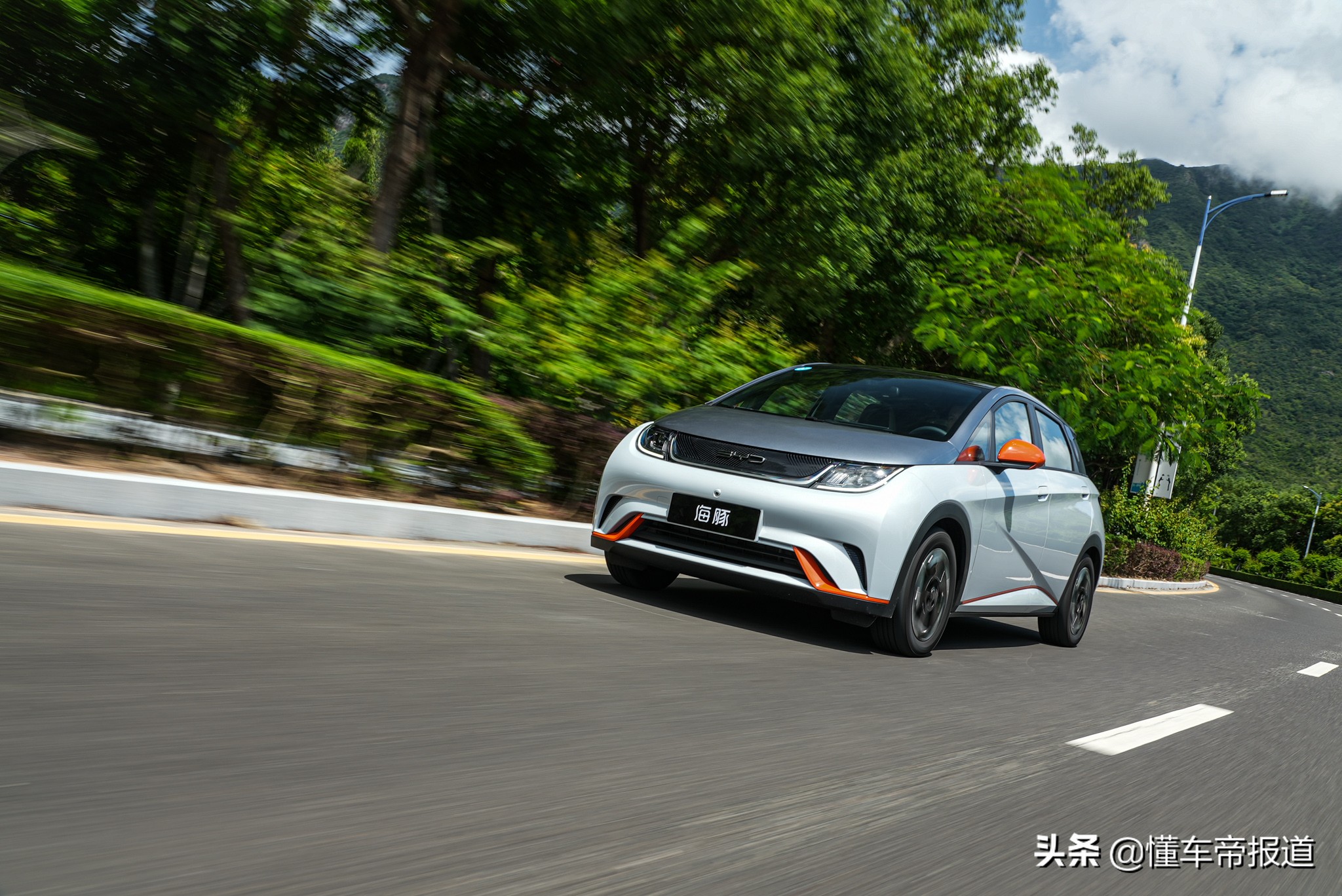 海豚採用雙色車身,顏色命名也是萌萌的,例如什麼「貝貝灰""嘟嘟白" "颯颯綠""蜜蜜橙"等,我們今天試駕的這臺就是蜜蜜橙配色,說是蜜蜜橙,其實只是在嘟嘟白配色的基礎上,在前包圍、後視鏡等位置使用了橙色的裝飾點綴。