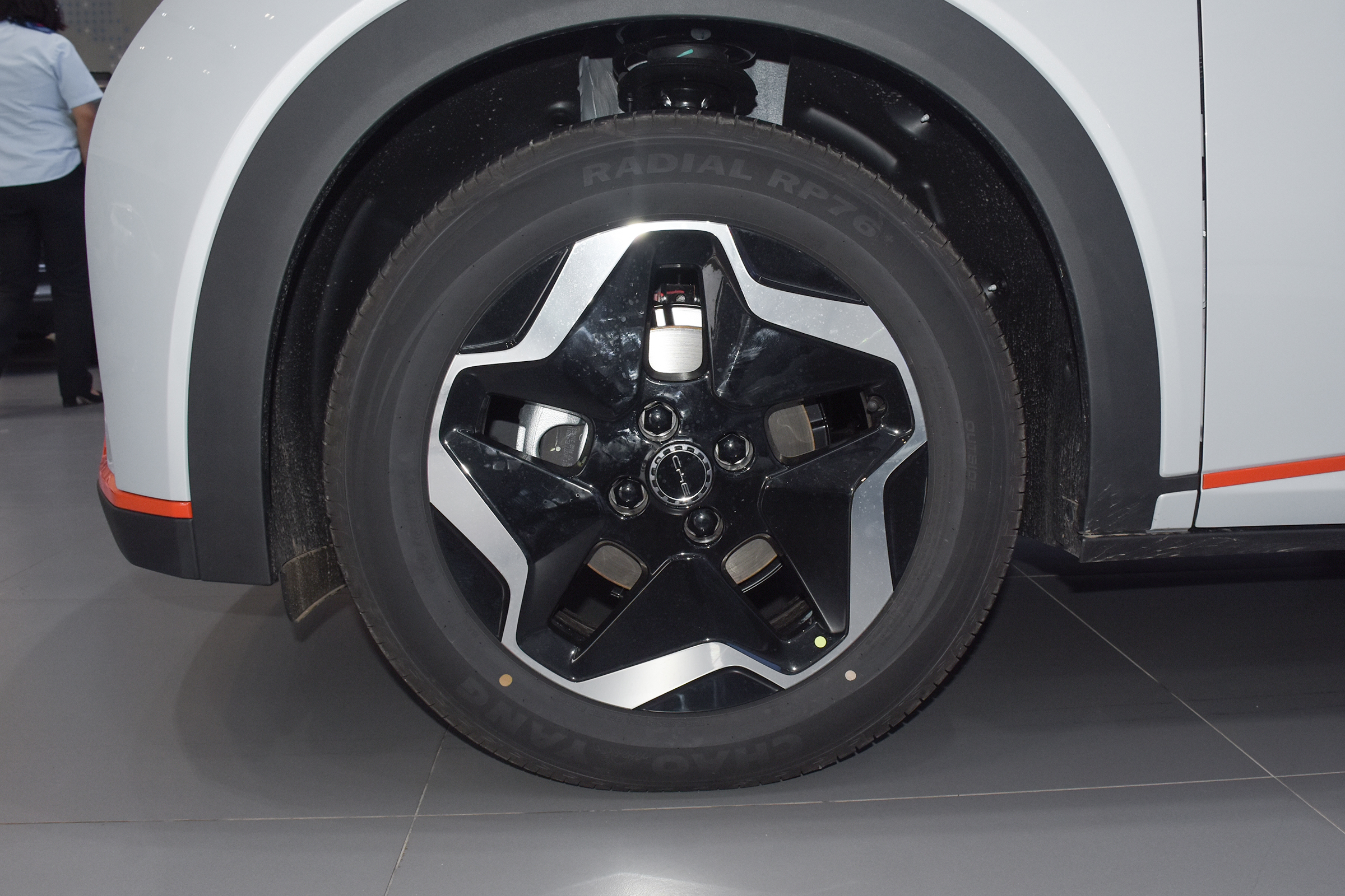 我們試駕的這款車配備的是16英寸的五輻式雙色輪圈,輪圈的造型有點像個海星。輪胎選擇的是來自朝陽品牌的RADIAL RP76+,規格為196/60 R16,這套輪胎的選擇也是更注重舒適性的。海豚的頂配車型配備17英寸的輪圈,其它車型均為16英寸輪圈。