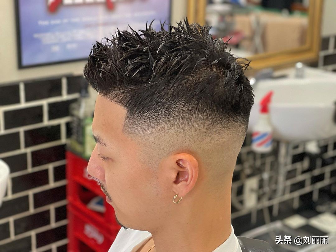 頭髮硬的男生也特別適合周邊推短的髮型,頭頂保留大概2到3公分向上梳理,具有拉長臉型的效果很帥氣。