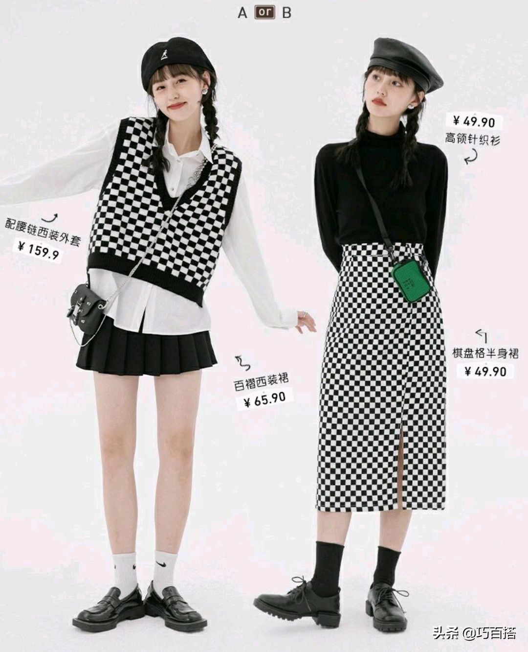 我們可以緊跟潮流,選擇棋盤格紋設計的毛衣、針織裙、馬甲等單品,利用基礎款+設計款的穿法,就能夠凹出精緻復古的style