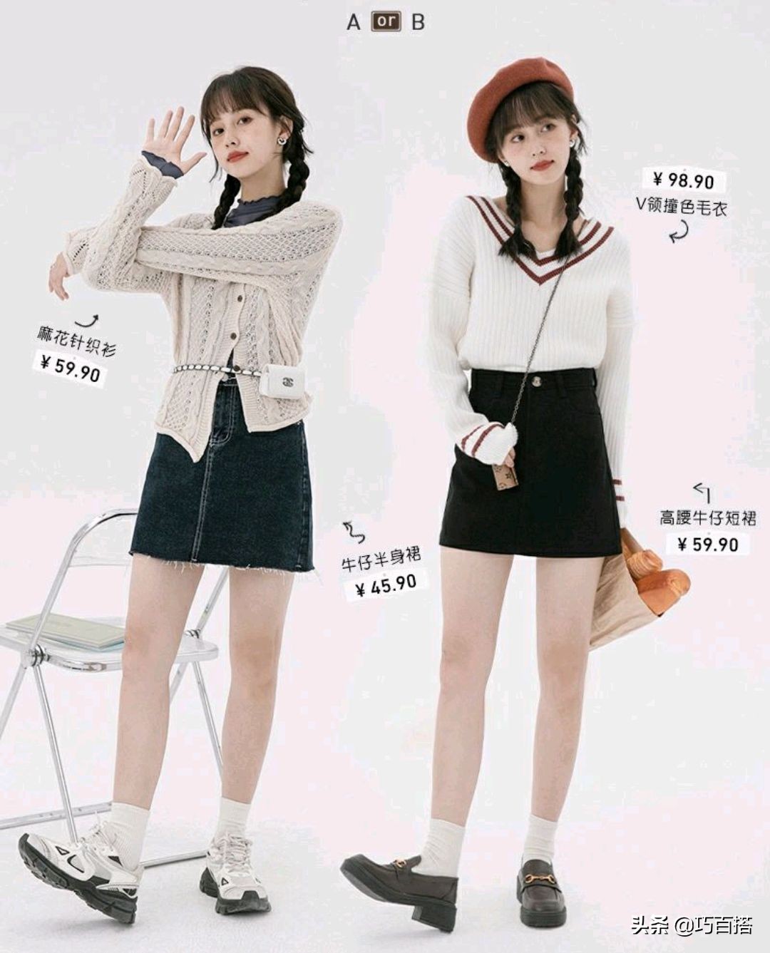 腿型不好的女生,我們可以選擇復古學院風的牛仔裙,超過膝蓋的長度,不僅遮肉還顯瘦,幾乎不挑身材。