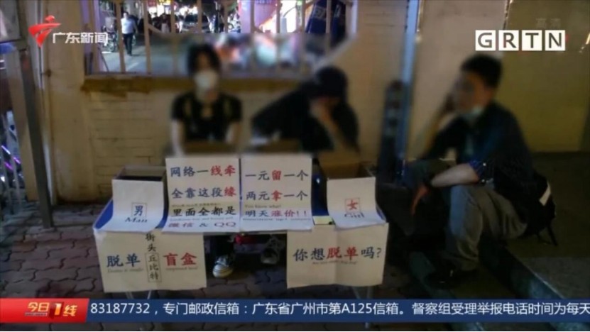 在廣州天河街頭,也有不少打著「脫單盲盒」字眼的小攤營業。據媒體報導,攤主開攤不到一個小時,就已經有二三十單生意。