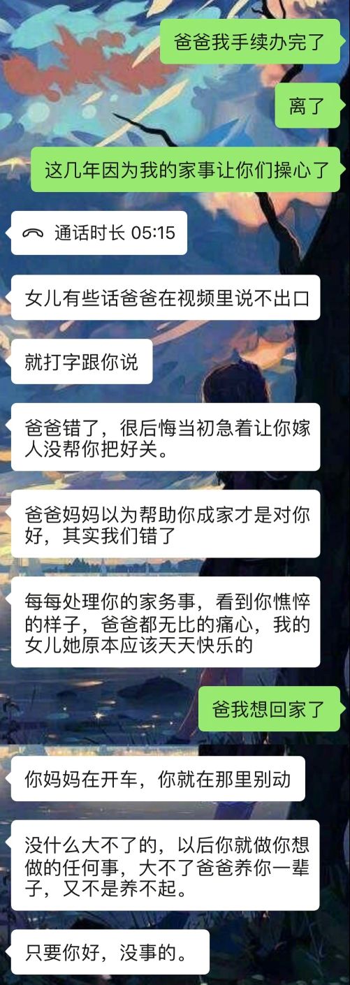 爸爸永遠是在小事情面前最沉默寡言,大是大非面前卻是的如山般的依靠。但是這樣的依靠為什麼我覺得太過心酸呢!很多父母當初動之以情,曉之以理勸說女兒嫁人的時候,有想過會有女兒過的不幸福的一天嗎?