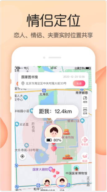 除了情侶軟體都有的互動功能,同時還增加了情侶定位。用於情侶間互相分享實時位置資訊。可以隨時查看TA在哪裡,手機電量狀況、距離多遠,再也不用擔心對方不接電話、不回資訊了。