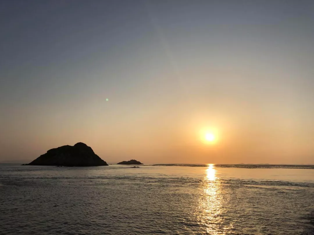 空氣中有淡淡的魚腥味兒,落日餘暉下的小島美不勝收。
