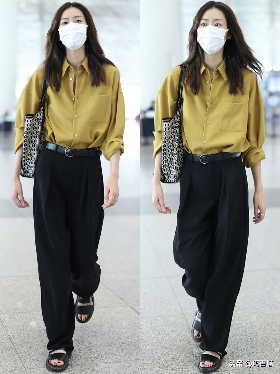 劉雯在穿搭時,服裝的顏色搭配,或者鞋類單品的選擇都非常的講究。這次薑黃色襯衫+黑色西裝褲的穿搭,盡顯成熟大女生魅力,卻因為一雙休閒風的涼鞋,助她混搭出了隨性街頭架式。