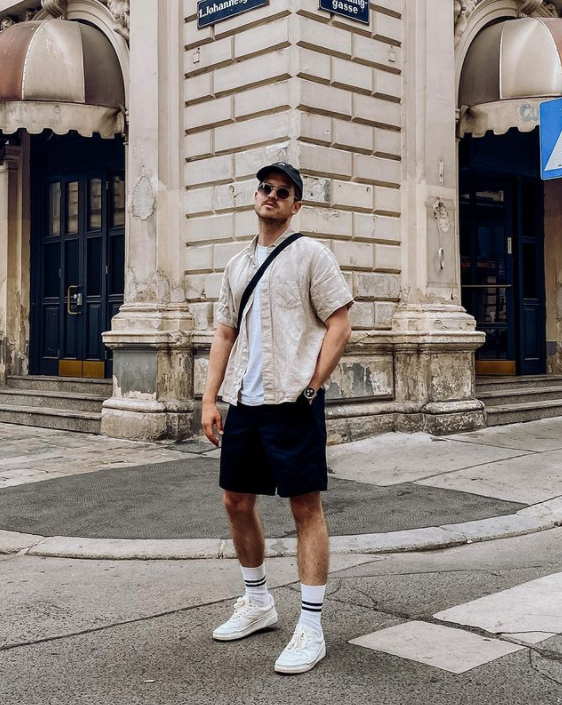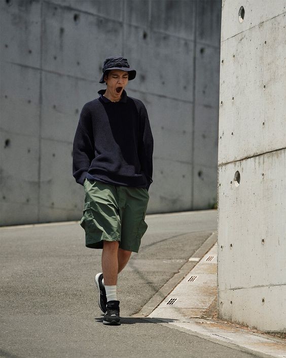 工裝短褲往往會配合黑色、軍綠色以及卡其色系而存在,因此讓整個人看起來隨性感十足,潮酷而又大方。標誌性寬鬆直筒款式配合大口袋設計,盡顯瀟灑的同時又不會太過單調,同時又能與小腿形成對比,反襯出好身材。