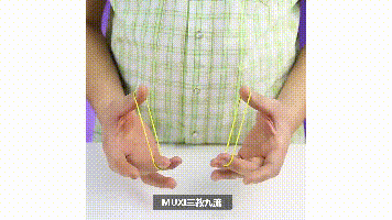 2.兩條橡皮筋,注意慢動作,左手本來是大拇指和中指,解出來之後變成了大拇指和食指。多練習~